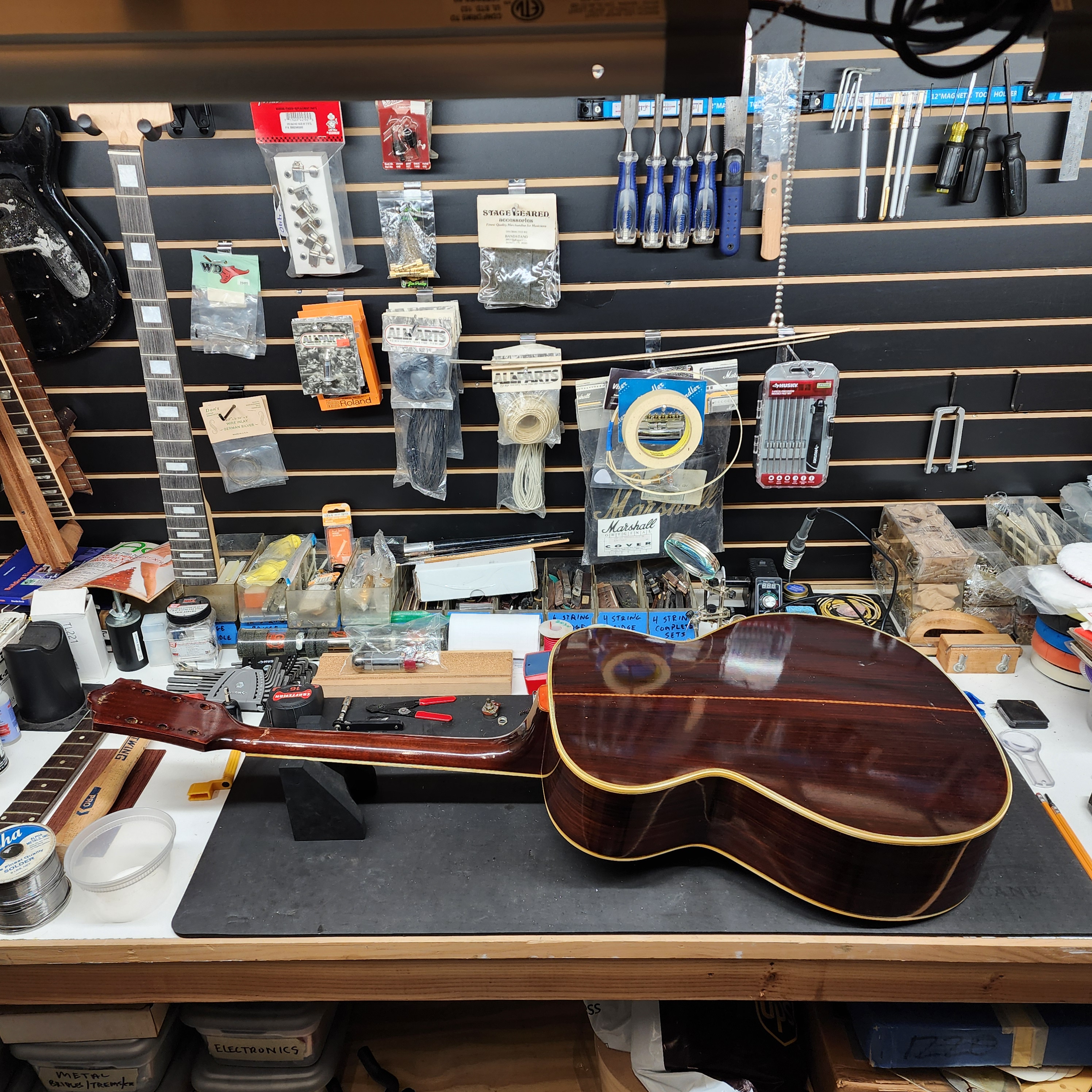 If you have a damaged guitar bring it in and we can take a look at getting it back together and back to making music!
